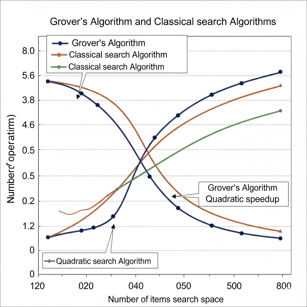 고전 컴퓨터에서 비정렬 데이터의 검색은 O(N)만큼의 시간이 걸립니다. Grover 알고리즘은 이 검색을 O(√N)으로 줄입니다.